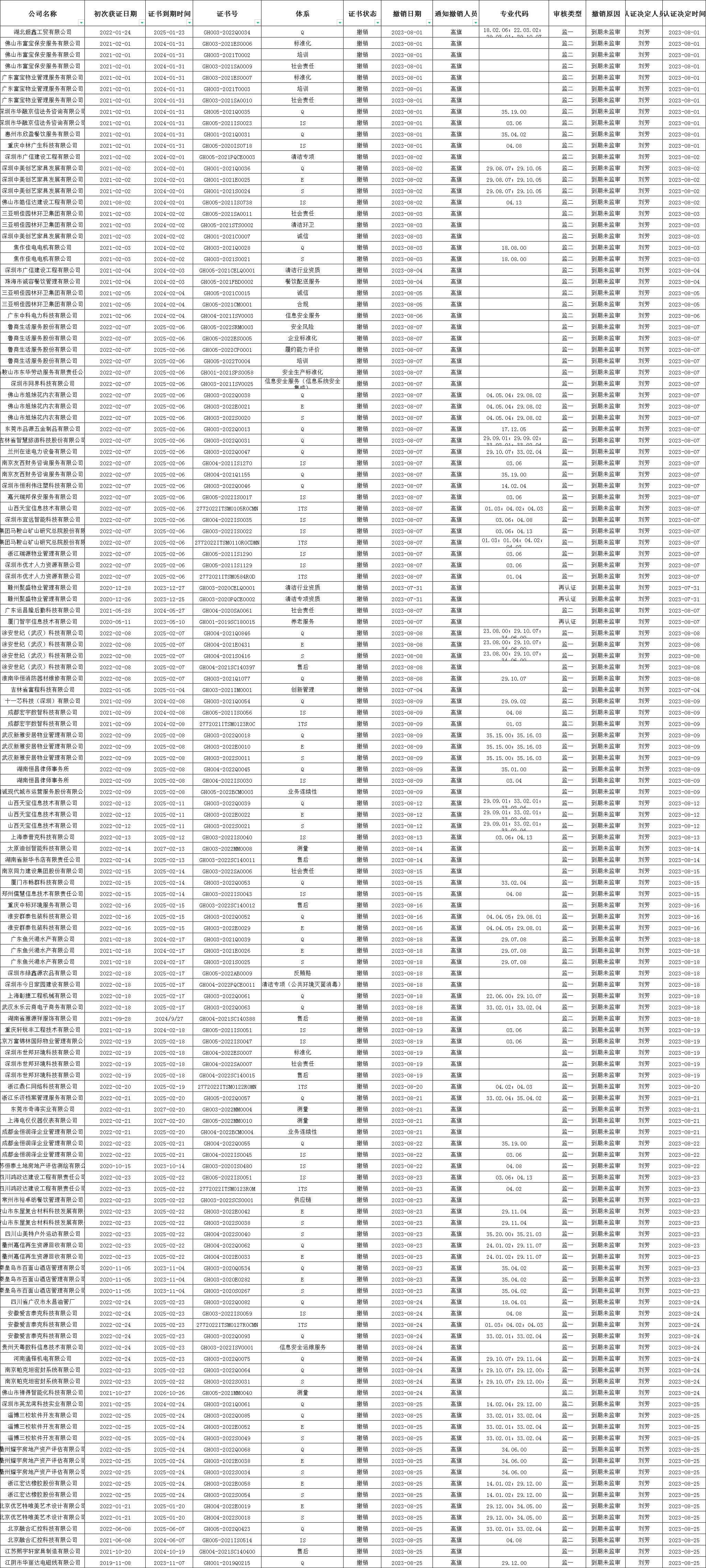 2023年8月撤銷清單