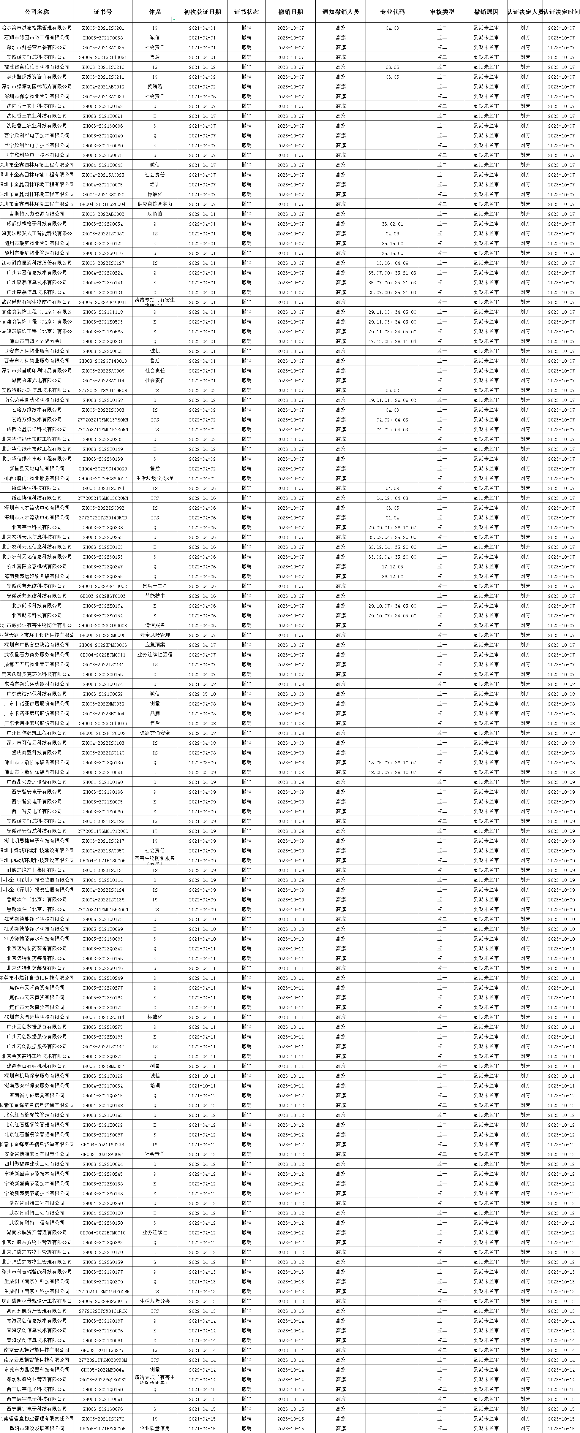 2023年10月撤銷清單